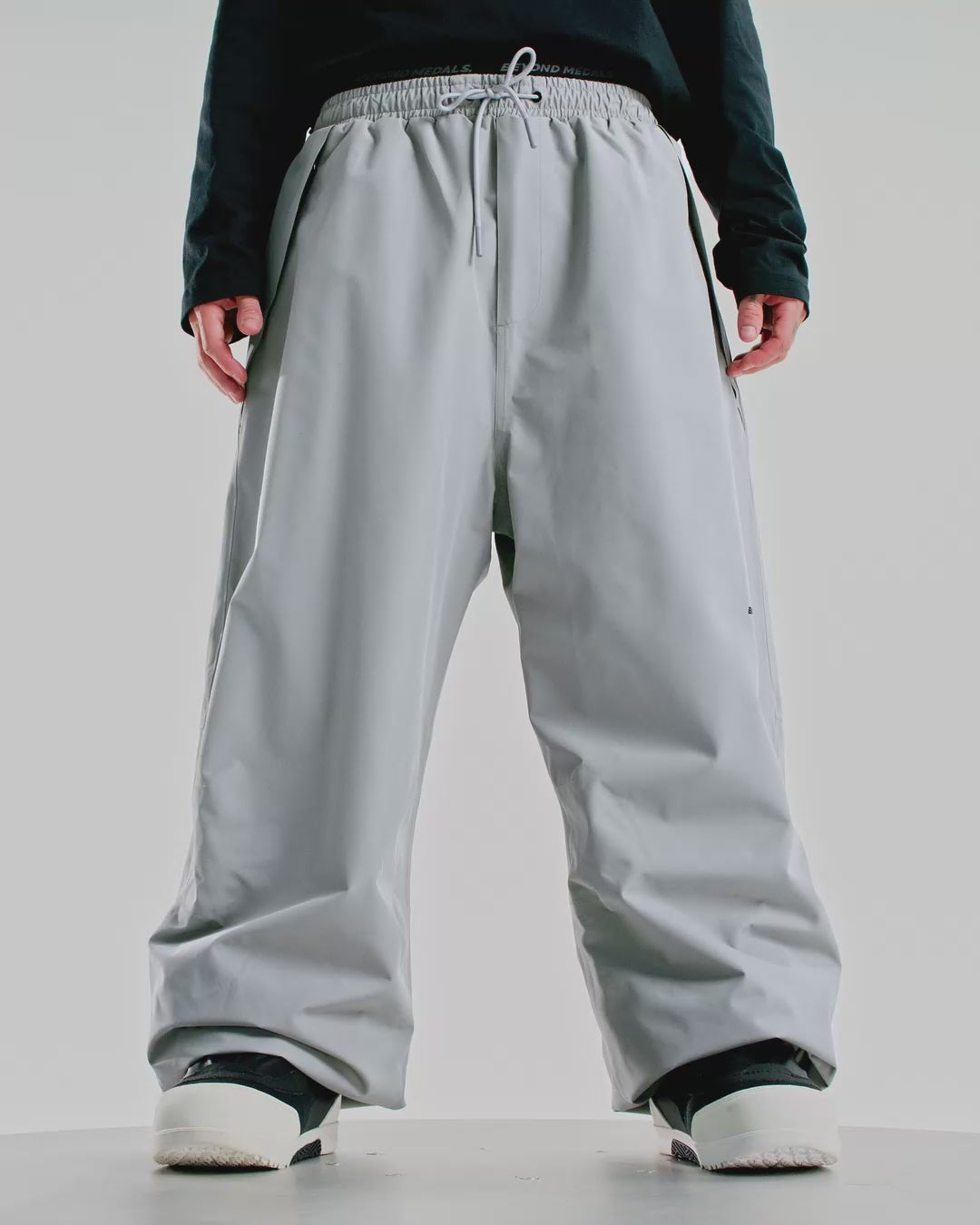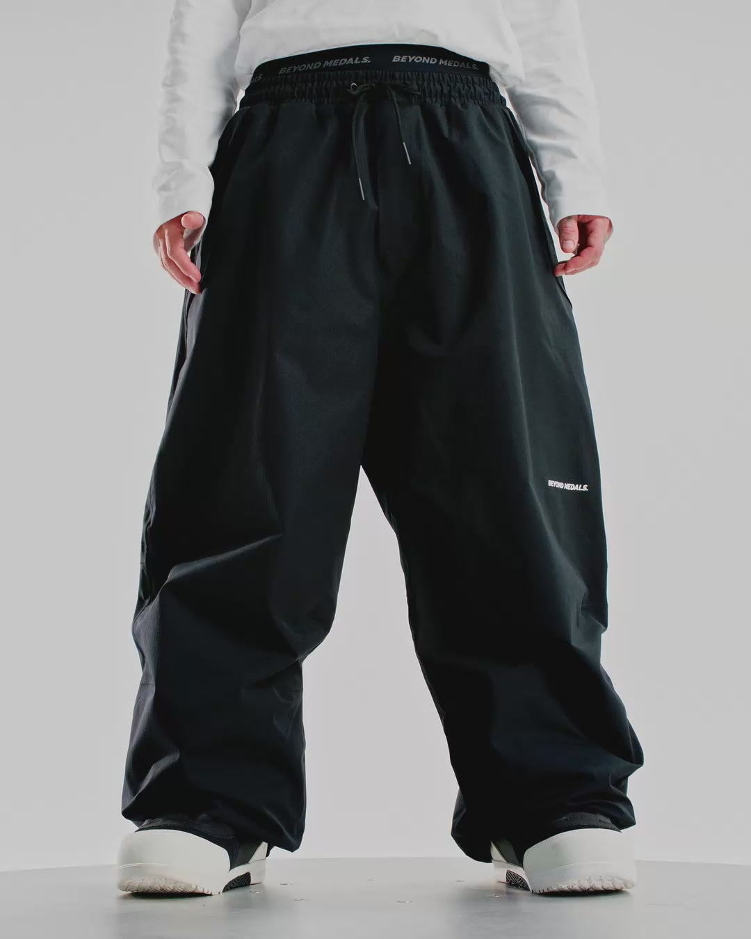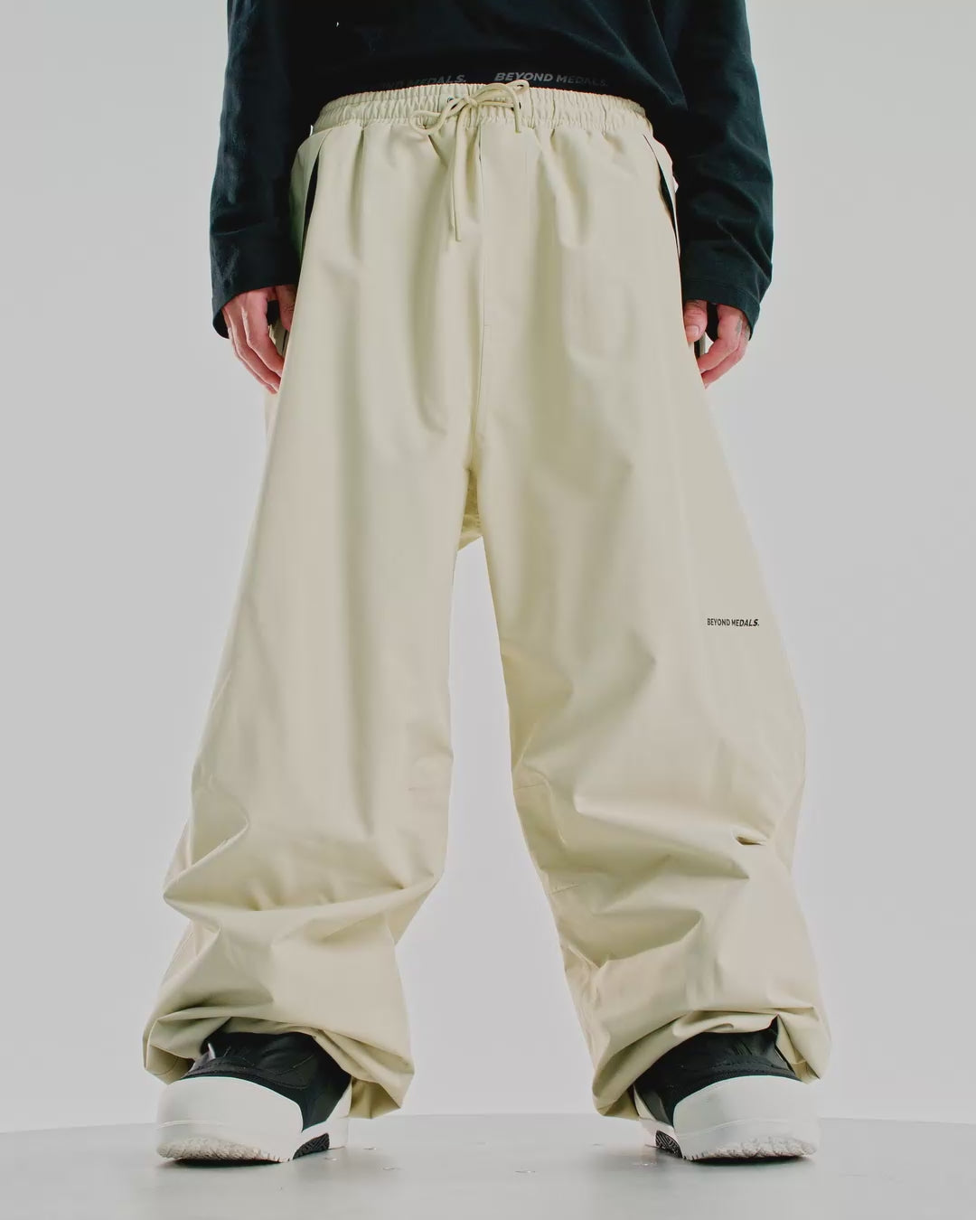 The Beyond Medals Park Pants are designed for everyday boarding with versatile, lightweight comfort. Crafted from 100% recycled polyester 2-layer fabric, they offer 15,000mm waterproofing, a PFC-free DWR finish, and fully taped seams to keep you dry and protected. Featuring a full lining without padding, these pants provide comfort without bulk. Practical details include zipped hand pockets, Velcro back pockets, an elastic waistband, and adjustable drawstrings at the waist and leg ends—everything you need for reliable performance on the slopes.