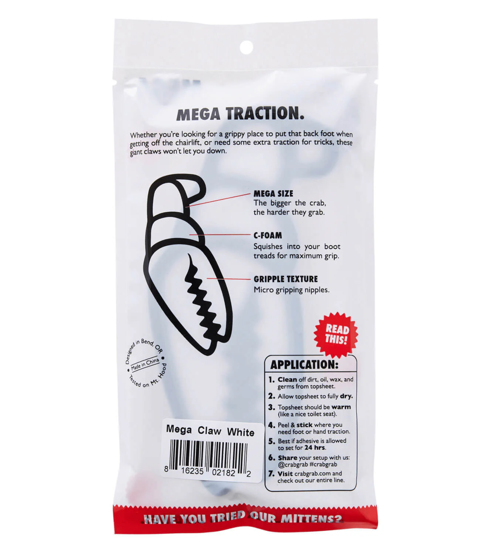 Experience the ultimate grip and style with Crab Grab Mega Claws! The fantastic traction technology will keep you locked in on the mountain while the eye-catching design will make you the envy of all your friends. Don't miss out - try them for yourself and feel the difference!