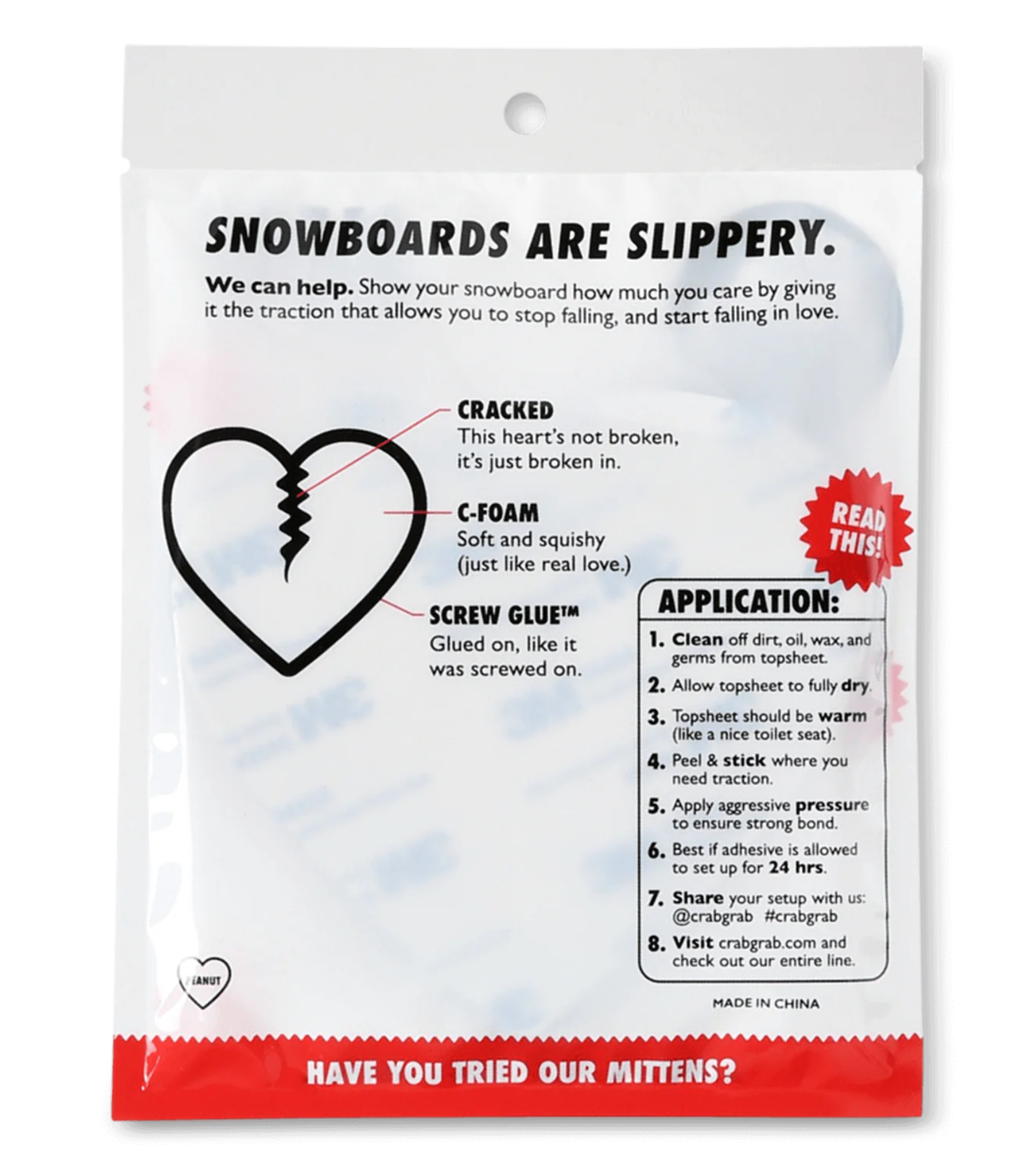 Fall in love with your snowboard all over again with the Crab Grab Mega Heart. This Mega-Sized Heart provide unbeatable grip and keep you two together on the slopes. Show your board some love and experience the perfect ride every time.