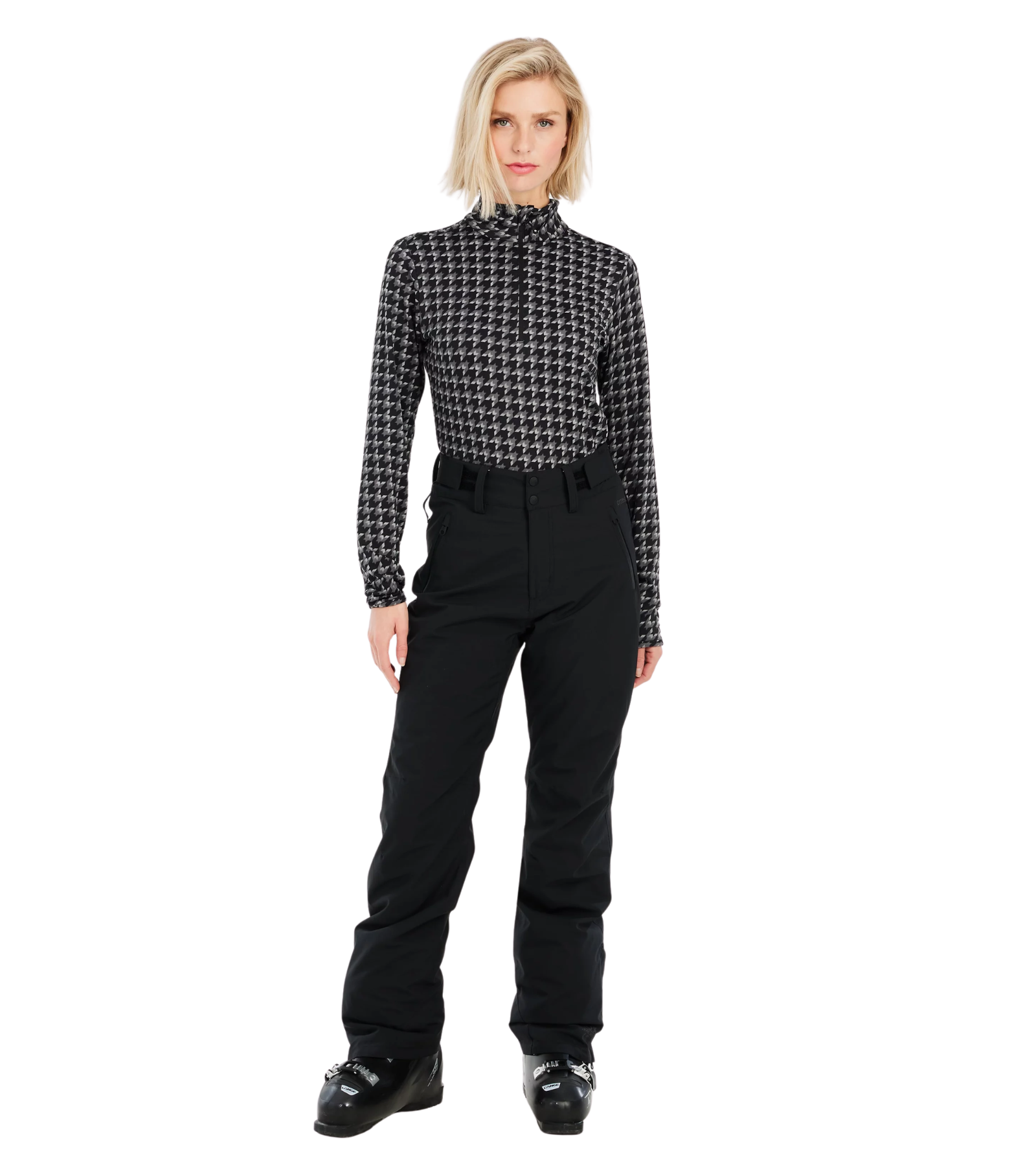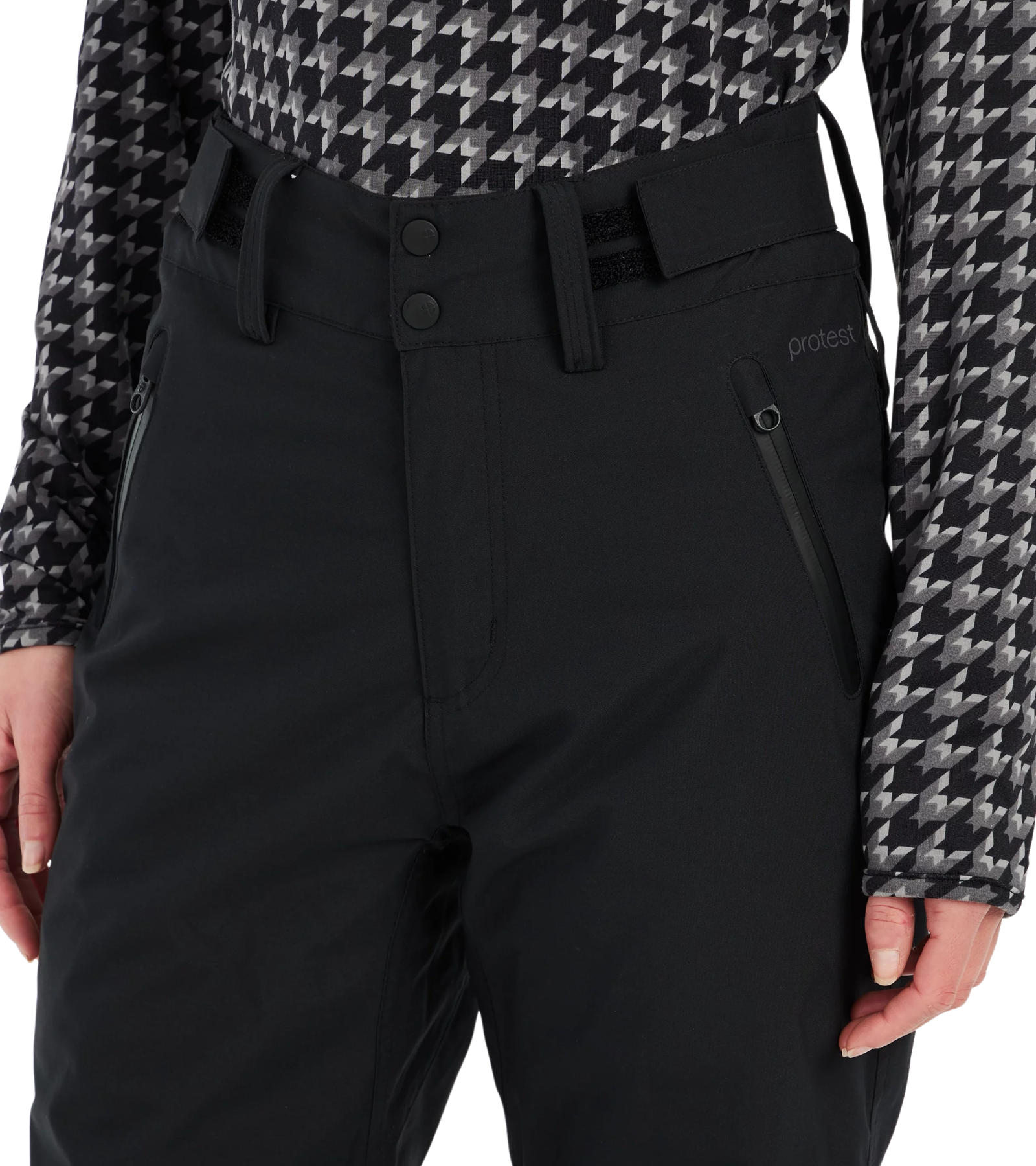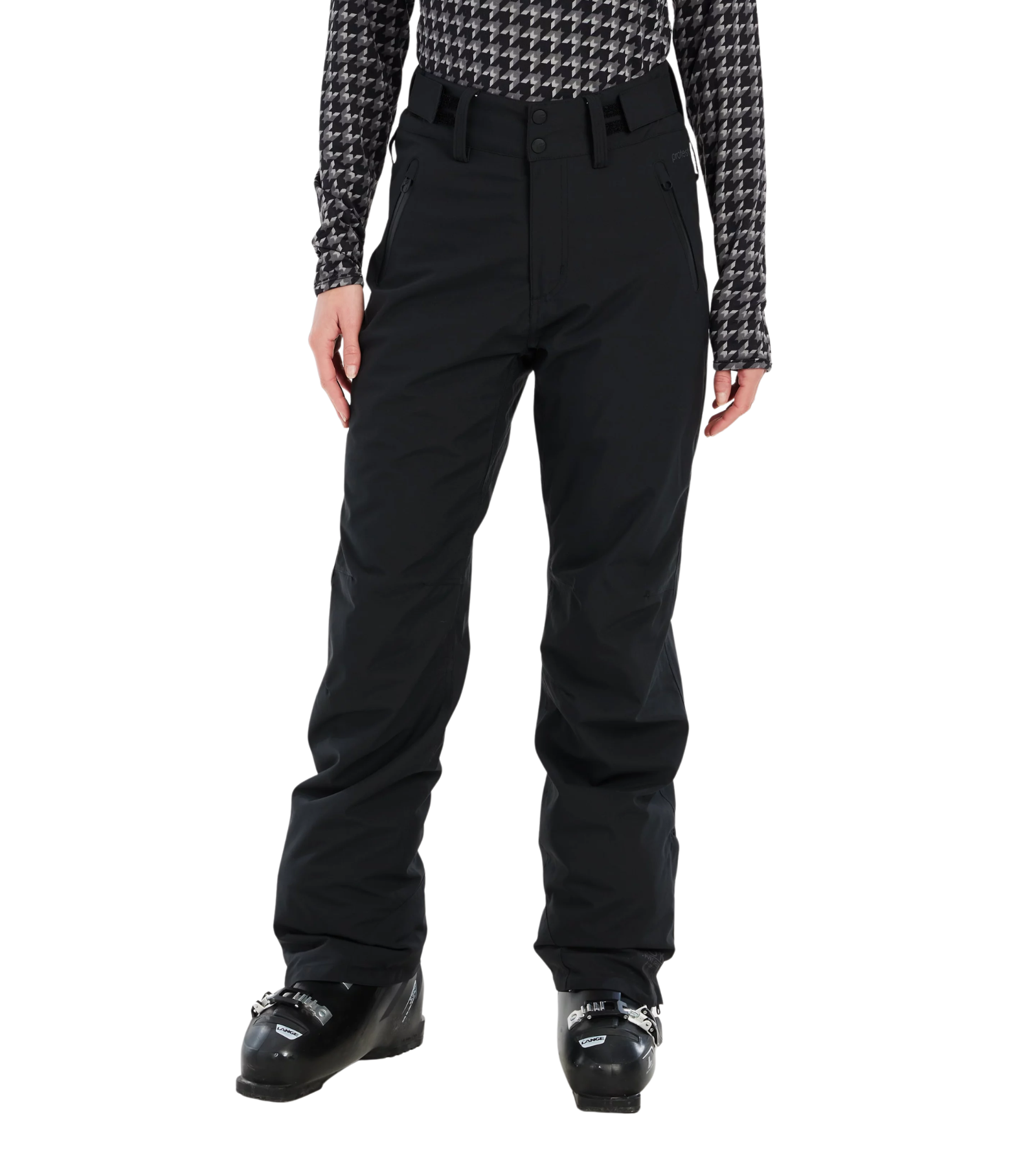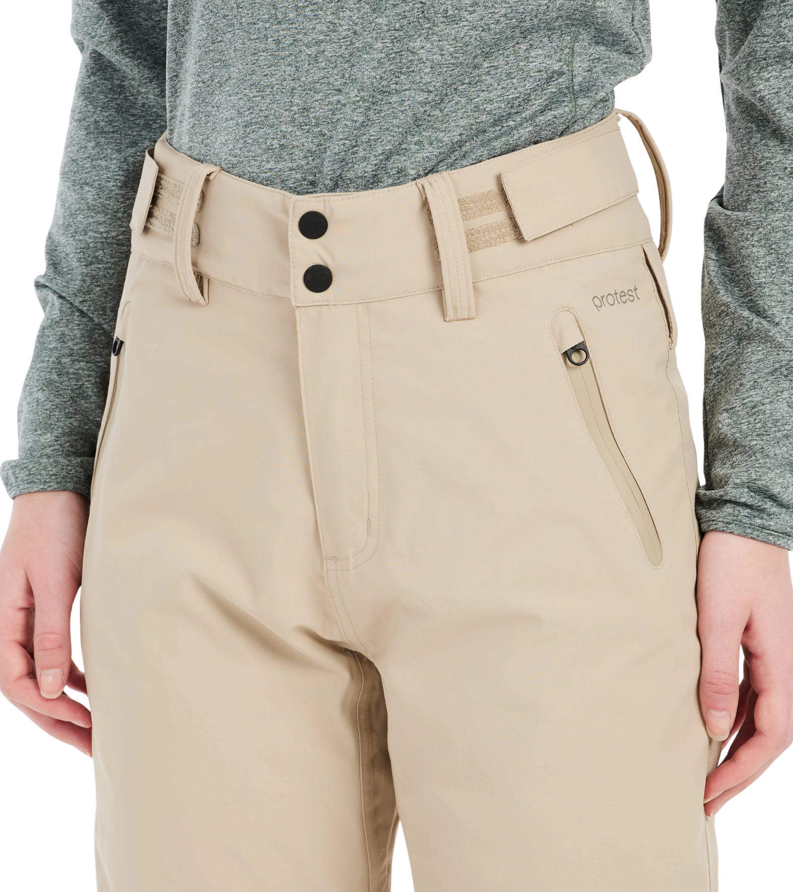 Elevate your mountain style with Protest's PRTCINNAMONES ski and snowboard trousers—the bestseller that proves you don't have to compromise on fashion for function. Featuring a sleek solid colour with flattering slightly flared legs, snap buttons, and subtle back ruching, these regular-fit trousers deliver effortless sophistication on every run. Now part of the PVRE Green series, they're crafted from recycled materials with an eco-conscious PFC-free waterproof finish that keeps you dry without harming the planet. Advanced critical taping seals out moisture at the seams, while elasticated ankle cuffs trap warmth and lock your boots securely in place. Silicone grippers provide extra grip and stability when you need it most. Practical meets stylish with strategically placed front and zippered pockets for your essentials, plus an adjustable, anti-slip waistband that stays put through every turn. Experience the perfect blend of protection, comfort, and contemporary design—because your snow adventure deserves trousers that look as good as they perform.