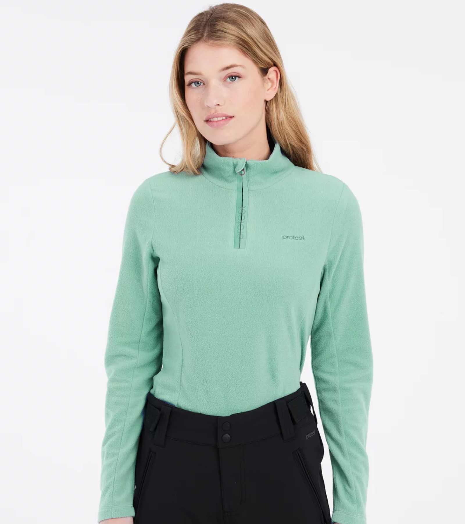 Stay cozy and stylish with the Protest Mutez 1/4 Zip Top! This mid layer from the Geotech series is crafted from soft, moisture-wicking micro fleece that keeps you warm without overheating. Its breathable, brushed fabric feels like a gentle hug, while the high neck and quarter zipper add extra warmth and easy ventilation. Designed with super soft stitching, it’s comfy enough to wear all day. Whether as a base or mid layer, the Mutez is your go-to winter buddy for chilly adventures.