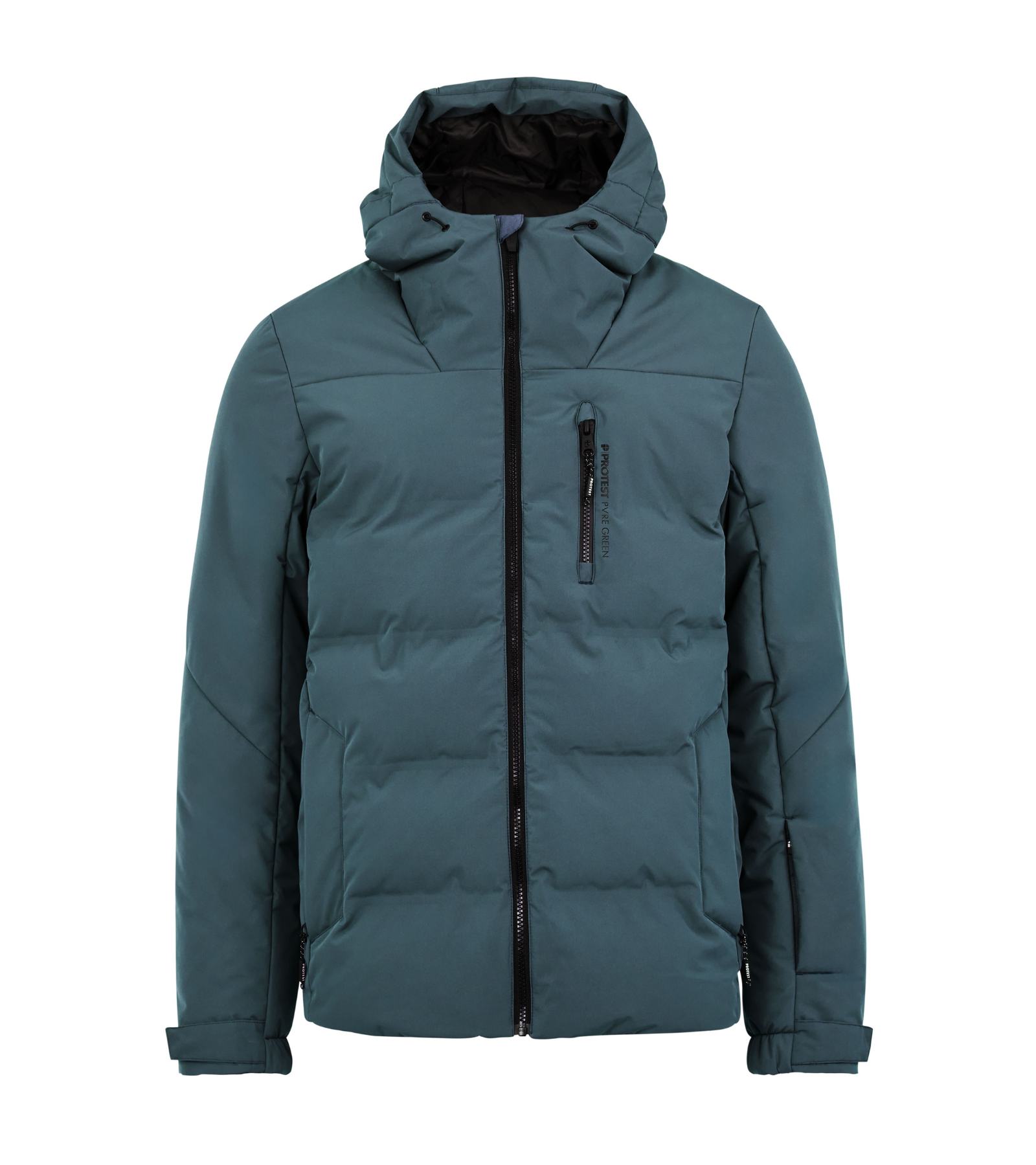 Introducing the Protest Superior Jacket, part of our PVRE Green collection of sustainable snow gear. Our PRTSUPERIOR jacket not only looks great, but also offers 10K water resistance and 10g breathability to keep you dry and comfortable on the slopes. With a fixed hood, high collar, and other hidden features, this jacket has got you covered.